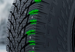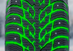 Шипы Arctic Stud Concept изготовлены из прочной нержавеющей стали, и остаются эффективными на протяжении всего срока службы шины. Благодаря ошиповке покрышка обеспечивает высокие тягово-сцепные характеристики, необходимые для тяжелых и габаритных автомобилей в снежную погоду.